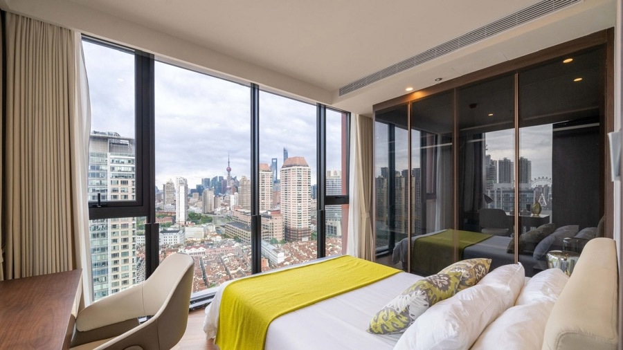 居住区域集中在6至22层,共规划230套公寓,以多元户型设计适配不同人群的生活偏好。6至21层为标准客房,22层布局大户型公寓,涵盖丰富户型类型——推窗即揽河景的菁英单间,让苏河波光成为日常背景;风尚一居室暗藏巧思,功能分区清晰有序,品质感渗透在每一处细节;臻享一居室采用全明设计,明亮通透的空间里满溢家庭温馨;悦澜两居室打造餐客厨一体格局,开阔空间自然成为家庭社交主场;天寰大户型则以双套房设计彰显品质,站在窗前,城市璀璨夜景尽收眼底,全方位为城市精英提供多样化、高品质的居住选择。