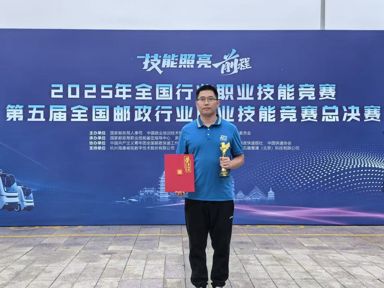 10月29日至30日,2025年全国行业职业技能竞赛——第五届全国邮政行业职业技能竞赛总决赛在浙江绍兴举行,来自湖南中通的林新征荣获“快递员职业”一等奖。